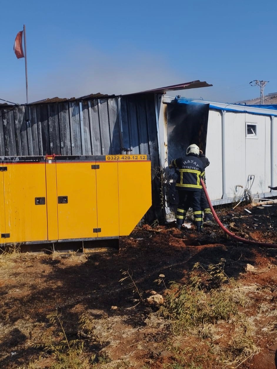 Hatay’da çıkan yangında konteyner kullanılmaz hale geldi.
