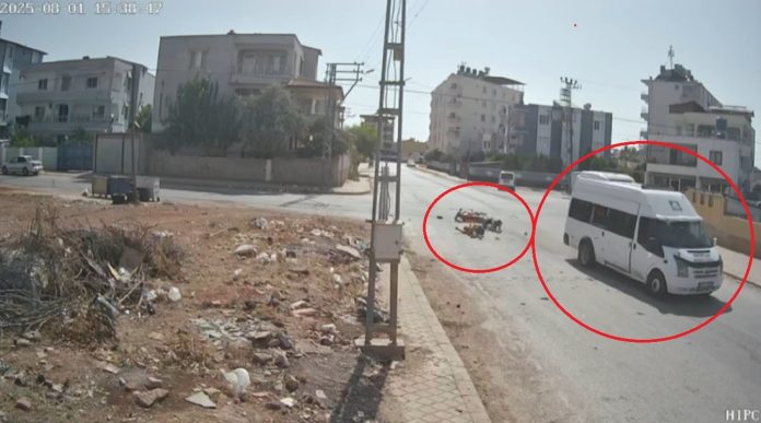Hatay’da motosikletin, minibüsle çarpışmasıyla 2 kişi kazanın şiddetiyle yere savruldu