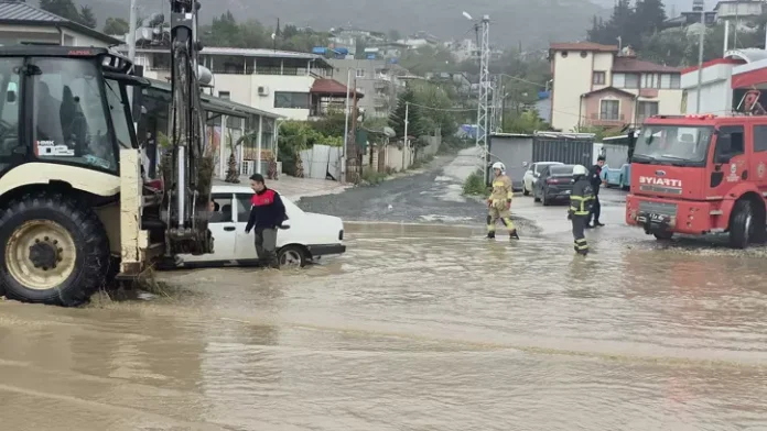 Samandağ ilçesinde etkili olan sağanak, caddelerde su baskınlarına neden oldu.