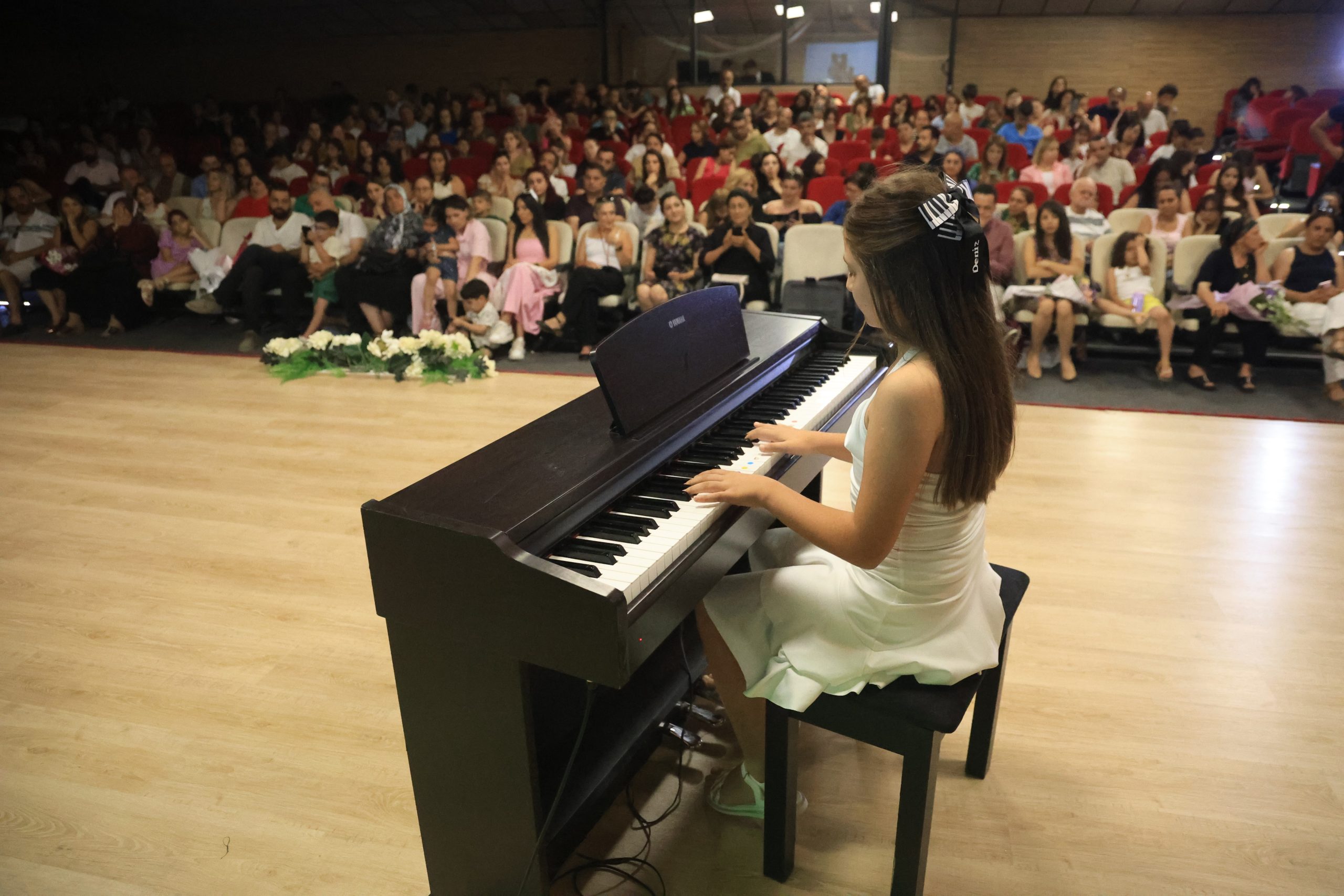 Kahramanmaraş merkezli depremde en çok hasar alan Hatay’da küçük yaştaki çocuklar depremden psikolojik olarak olumsuz etkilenmişti. Depremin yaralarını sarmak ve sanatın iyileştirici gücüyle öğrencilere umut olmak isteyen müzik öğretmeni Gamze Vahap, çocuklara piyano eğitimi vermeye başladı. Çocuklara verdiği eğitimler başarılı olan ve çocukların bir nebze de olsa deprem psikolojisinden uzak kalmasını sağlayan vefakar müzik öğretmeninin, 39 öğrencisi okulun konferans salonunda piyano resitali ve koro dinletisi düzenledi.