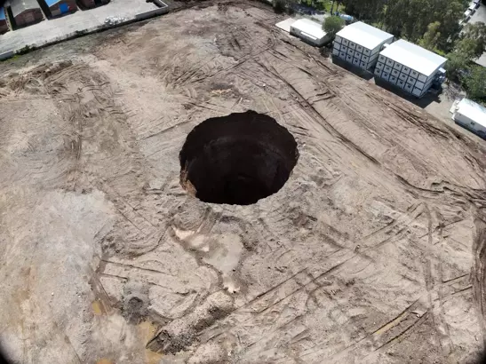 İskenderun ilçesinde 35 metre çapında, 45 metre derinliğinde obruk oluştu.