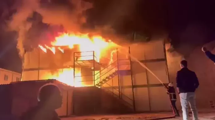 Belen ilçesinde şantiyede işçilerin yatakhane olarak kullandığı konteynerlerde çıkan yangın, itfaiye ekipleri tarafından söndürüldü.