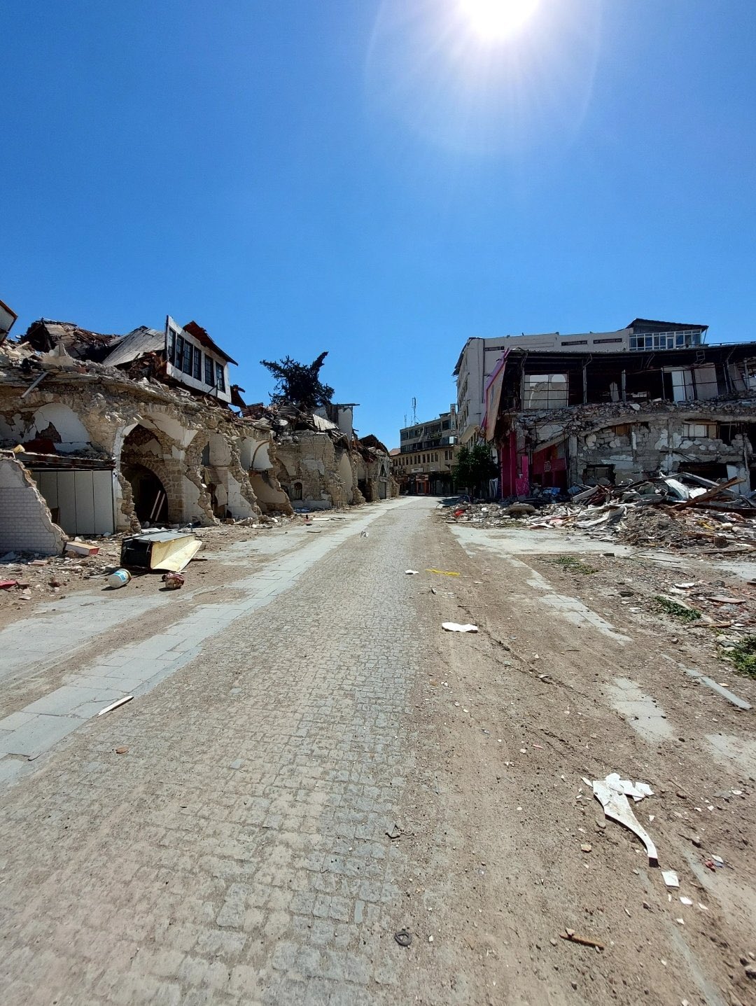6 Şubat Deprem Felaketinde En Ağır yarayı alan Hatay`ın Antakya İlçesinin en tarihi ve en işlek caddelerinden biri olan Saray Caddesinin 31 Aralık 2022 ve 31 Aralık 2023 tarihinde çekilen 2 fotoğrafı yayınlandı. 2 fotoğraf arasındaki fark yürek burktu.
