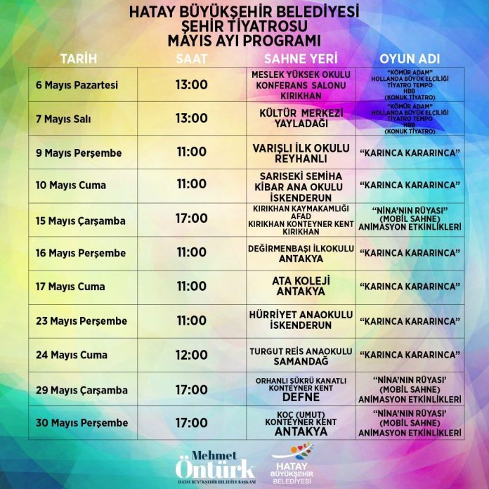 Hatay Büyükşehir Belediyesi Şehir Tiyatrosu, Mayıs ayında tiyatro severlerle ve çocuklarla buluşmaya hazırlanıyor. 6 Mayıs tarihinden itibaren farklı noktalarda birden fazla oyun sahnelenecek, seyircilere unutulmaz anlar yaşatacak.