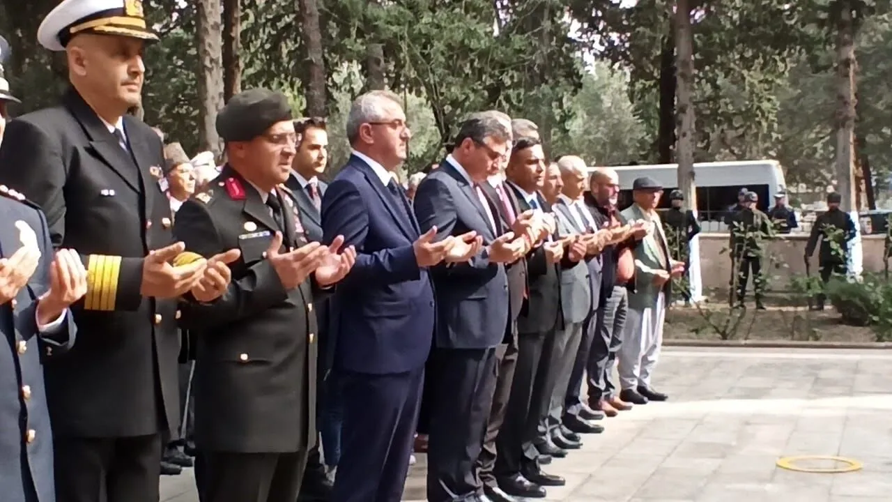 Şehitlikteki Anma programında protokol ve Gazi aileleri dernekleri çelenklerini sundu. Törende tören mangası havaya üç pare sayı atışı yaptı Saygı Duruşu ve istiklal Marşımızın okunmasının ardından Kuran-ı Kerim okundu.