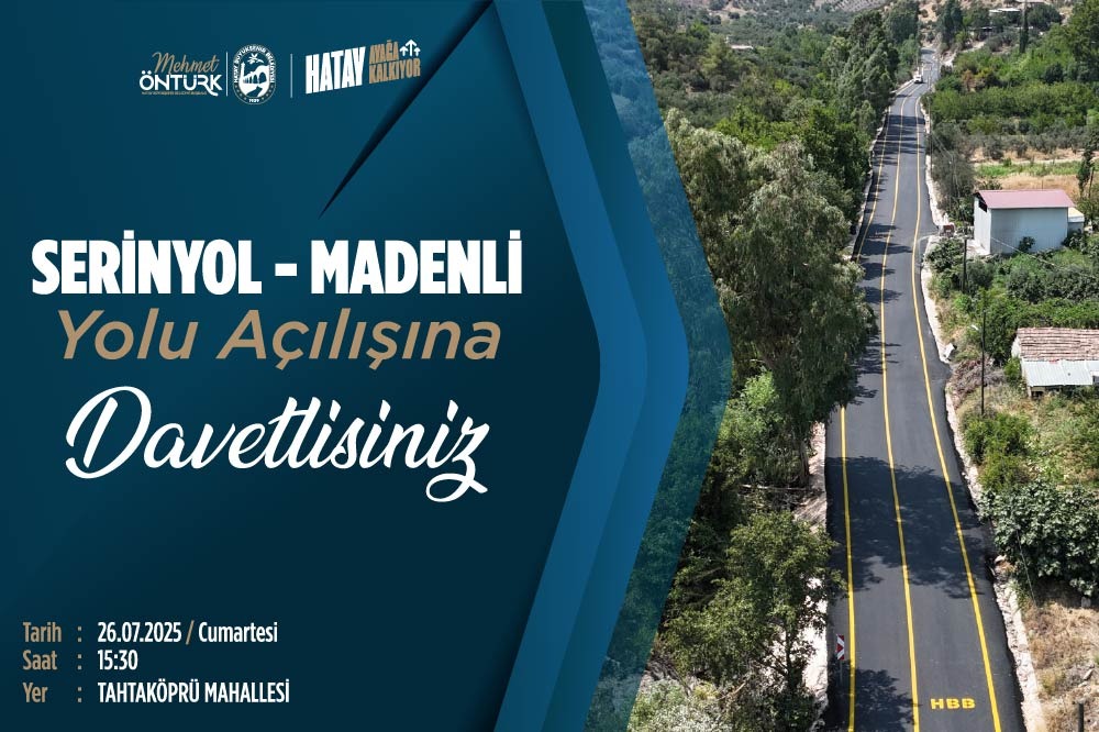 Antakya Serinyol-Arsuz Madenli yolu, 26 Temmuz 2025 Cumartesi günü saat 15.30’da Antakya Tahtaköprü Mahallesi’nde düzenlenecek törenle hizmete açılıyor.