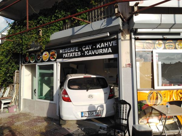 İskenderun Ulucami Caddesinde yıkılan iş büyük çarşı işhanı karşındaki işyerine bir direksiyon hakimiyetini kaybeden araç girdi.