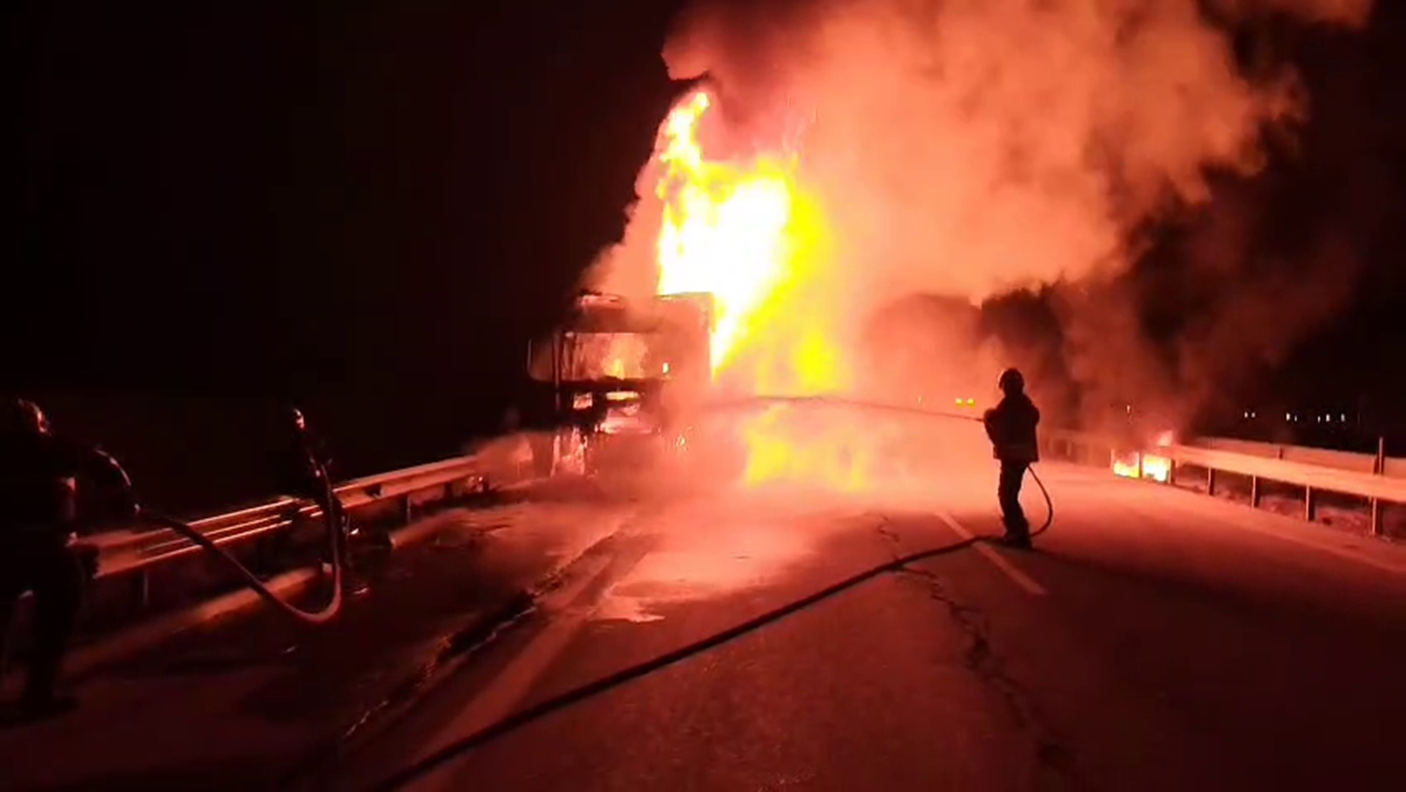Yangın, gece saatlerinde Erzin Organize Sanayi Bölgesi’nde yaşandı. Seyir halindeki tır alevlere teslim olarak yanmaya başladı. Kısa sürede alevlerin yükseldiği tıra itfaiye ekipleri müdahale etti. Ekiplerin müdahalesiyle kontrol altına alınan alevler, dorse kısmına sirayet etmeden söndürüldü. Yangında can kaybı ve yaralanma yaşanmazken tır kullanılmaz hale geldi.