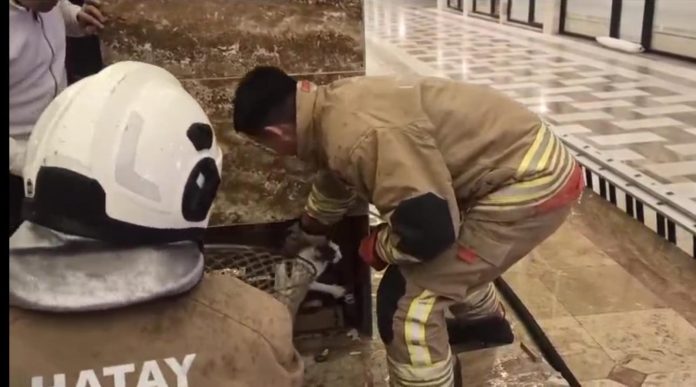 Hatay’ın İskenderun ilçesinde duvar boşluğuna sıkışan kedi, itfaiye ekiplerinin müdahalesiyle kurtarıldı.