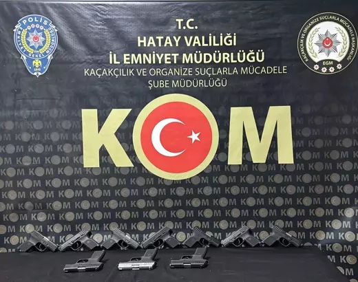Defne ilçesi uygulama noktasında polis ekipleri şüphe üzerine bir aracı durdurdu. Yapılan aramada, arka koltuktaki çuvalın içinde 10 ruhsatsız tabanca ele geçirildi. Araçtaki İ.G. ile E.G. gözaltına alındı. İşlemlerinin ardından adliyeye sevk edilen şüpheliler tutuklandı.