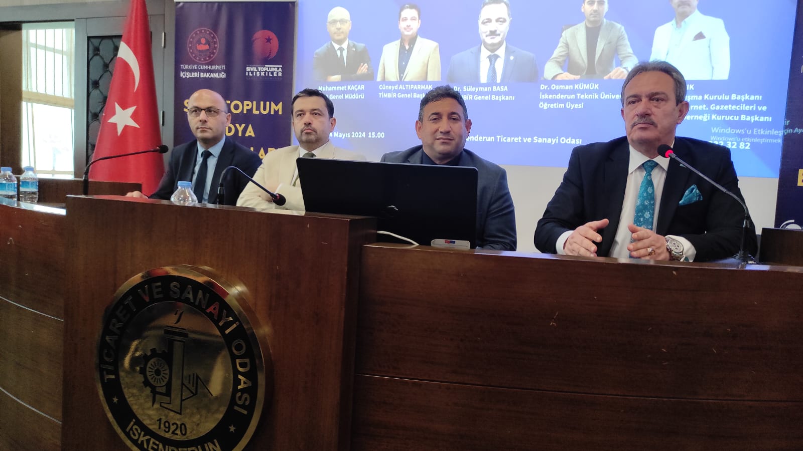 Sivil toplum kuruluşları ile medyanın iletişiminin güçlendirilmesini amaçlayan ve İnternet Medya ve Bilişim Federasyonu (İMEF) ve Türk İnternet Medya Birliği (TİMBİR) tarafından, İskenderun Belediyesi, İskenderun Teknik Üniversitesi, İskenderun Ticaret ve Sanayi Odası ile İskenderun Deniz Ticaret Odası işbirliğinde gerçekleştirilen programa; İskenderun Cumhuriyet Başsavcısı Muhammet Emin Ünalan, İskenderun Deniz Ticaret Odası Başkanı Kemal Kutlu, TİMBİR Genel Başkanı Dr. Süleyman Basa, Arsuz İş İnsanları Derneği Başkanı Adnan Ağır, İskenderun Teknik Üniversitesi Genel Sekreteri Prof. Dr. Meltem Eken, TİMBİR Genel Başkan Vekili Av. Cüneyd Altıparmak, TİMBİR Yönetim Kurulu Üyeleri Tanju Akıncıoğlu, Levent Özkurt, Menderes Demir, Birlik Haber Ajansı Genel Müdürü Muhammet Kaçar, İskenderun Teknik Üniversitesi Öğretim Üyesi Dr. Osman Kümük, Güvenlik Uzmanı Dr. İmbat Muğlu, Gelişim Hastanesi Genel Müdürü Ahmet Ahraz ve STK temsilcileri ve davetliler katılım gösterdi.