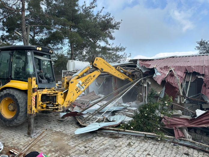 Belen Belediyesi Encümeni tarafından alınan karar doğrultusunda, Tapusu başka birine ait olan parselde bulunan 3 adet kaçak ve ruhsatsız prefabrik yapı Yıkıldı