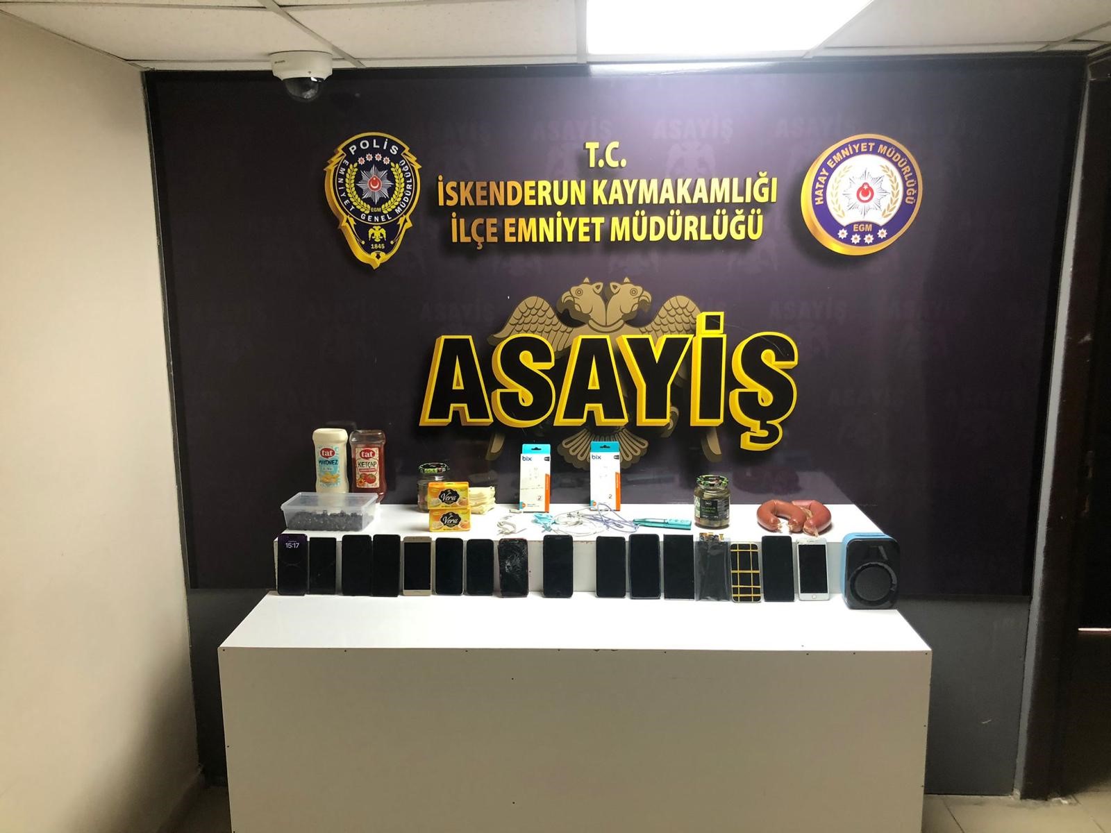 Şahıslarla birlikte; 14 adet cep telefonu, USB kabloları, çeşitli gıda malzemeleri ele geçirildi.