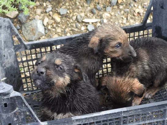 Samandağ ilçesinde su tahliye borusunda sıkışan yavru köpekler itfaiye ekipleri tarafından kurtarıldı.