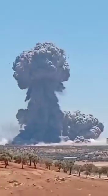 Suriye’nin İdlib kentinde mühimmat deposunda yaşanan patlama Hatay’dan hissedilirken yükselen dumanlar Türkiye tarafından net olarak görüldü.