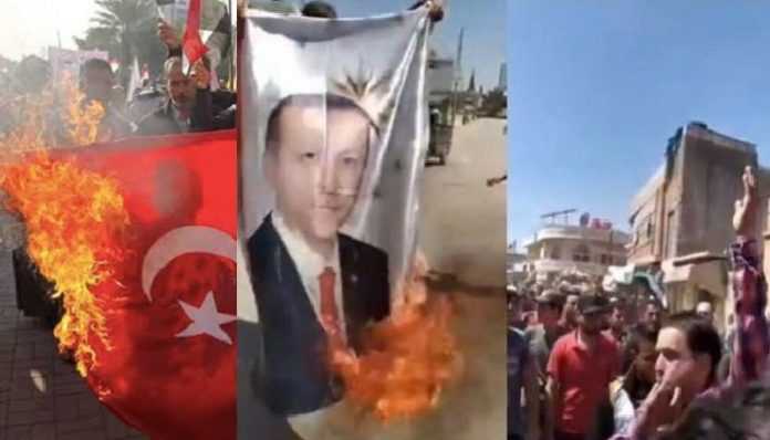 Türk bayrağını ve Erdoğanın posterini yaktılar