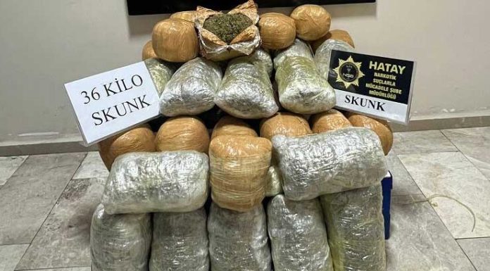 Yapılan aramada 36 kilogram skunk ele geçirildi. Araç şoförü A.U.K. gözaltına alındı.