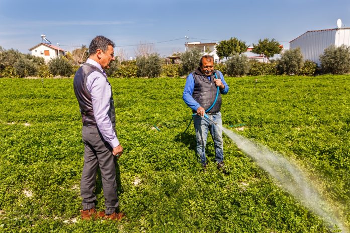İYİ Parti Hatay Büyükşehir Belediye Başkan Adayı Nusret Cömert, Antakya Ticaret Borsası Meclis Başkanı Ünal Çolakoğlu’nu ziyaretinde “Hatay Yeniden” vizyonunda tarımsal faaliyetlerin en önemli başlıklar arasında bulunduğunu belirterek, tarım arazilerinin korunması, verimliliğin artırılması, girdi maliyetlerinin düşürülmesi ve hasat döneminde ürünün dalında kalmasını önleyecek projeleri etkin şekilde hayata geçireceğini söyledi. Nusret Cömert, üreticilere ücretsiz toprak analizleri, sertifikalı fide ve fidan desteği vereceğini, kuracağı yenilenebilir enerji üretim tesisleriyle çiftçinin elektrik ve sulama maliyetini düşüreceğini, tarıma dayalı sanayiyi destekleyip sözleşmeli üretim modelini geliştirerek hasat döneminde ürününün dalında kalmasını önleyeceğini duyurdu.