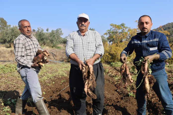 Kuraklık nedeniyle tatlı patateste verim yarı yarıya düştüğünü ifade eden çiftçi Fadıl Çiftçi, “Tatlı patates üretiyoruz. Hasat normal ama mevsimsel kuraklık nedeniyle verimde düşüşler var. Kuraklık çok etkiledi, verim yarı yarıya düştü. Tatlı patatesi Temmuz ayında ekiyoruz. Ekim ve Kasım aylarında hasat için söküm yapıyoruz. Tatlı patatesin çok çeşidi var. Farklı renklerde olan tatlı patates çeşitleri var. Söküm yapacak işçi bulamadığımız için sökümü iş makinesi yapıyor. Tatlı patates tarladan 30 ila 35 TL arasında iken manavlarda ise 50 ila 70 TL civarında satılıyor. Tatlı patates, tadı ve vitamin bolluğuyla diğer patatesten farklı oluyor. Tatlı patatesi biz kaynatarak, pişirerek veya tatlısını yapıyoruz. Tatlı patates şehir dışlarına gidiyor. Faydası çok kuvvetli ve tam bir şifa deposu bir patatesti” ifadelerini kullandı.