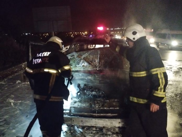 Hatay’da seyir halindeyken yanmaya başlayan araç kullanılmaz hale geldi.