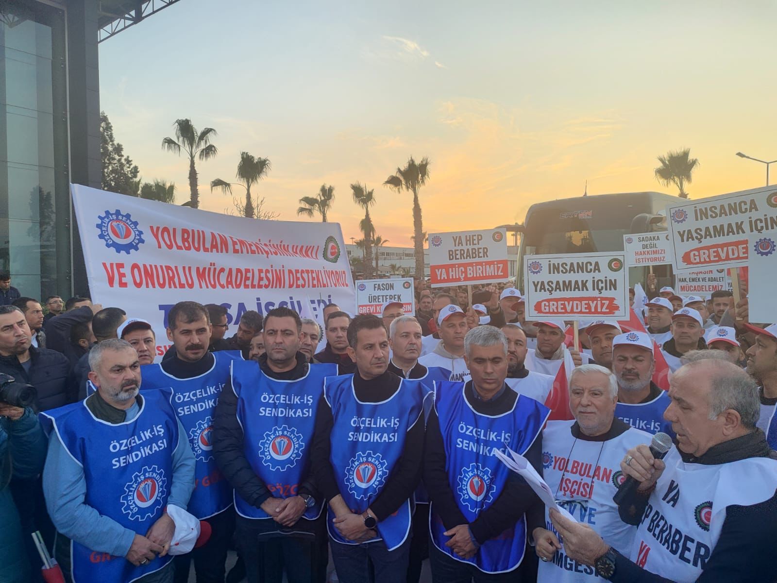 Hatay Dörtyol’daki Yolbulan Metal’de alın teri akıtan işçiler, Özçelik-İş Sendikası öncülüğünde çıktıkları grevin 243. gününde, işveren tarafına seslerini duyurmak, haklı talep ve beklentilerini kamuoyuna açıklamak üzere otobüslerle fabrika önünden Ankara’ya hareket etti.