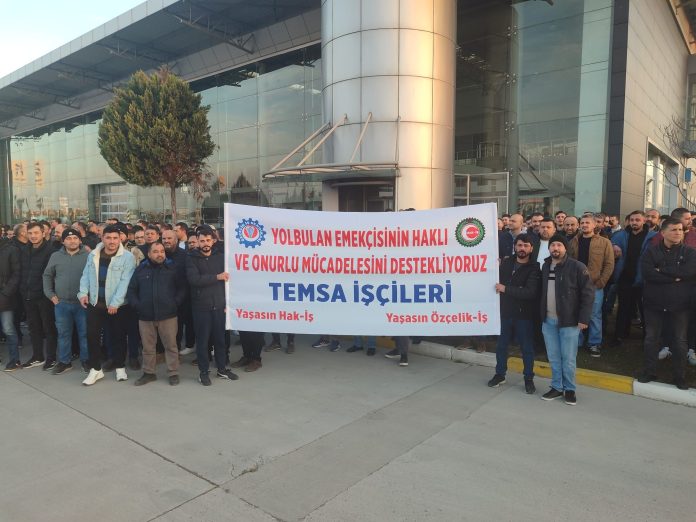 Daha sonra bir konuşma yapan Sendika Genel Başkan Yardımcısı Şerafettin Koç ise TEMSA işçisine göstermiş oldukları dayanışma için teşekkür etti. Koç; “Yolbulan grevimizde haklıyız ve kazanacağız. Kararlıyız ve davamızdan dönmeyeceğiz. İnançlıyız ve hakkımızı kimsede bırakmayacağız. Bu vatanın evlatları olarak mağduruz ve sesimizi herkese duyuracağız. Kazanan emek ve emekçi, kazanan Türkiye olacak. Yaşasın HAK-İŞ, Yaşasın Özçelik-İş, Yaşasın Yolbulan emekçisinin haklı ve onurlu mücadelesi” ifadelerini kullandı.