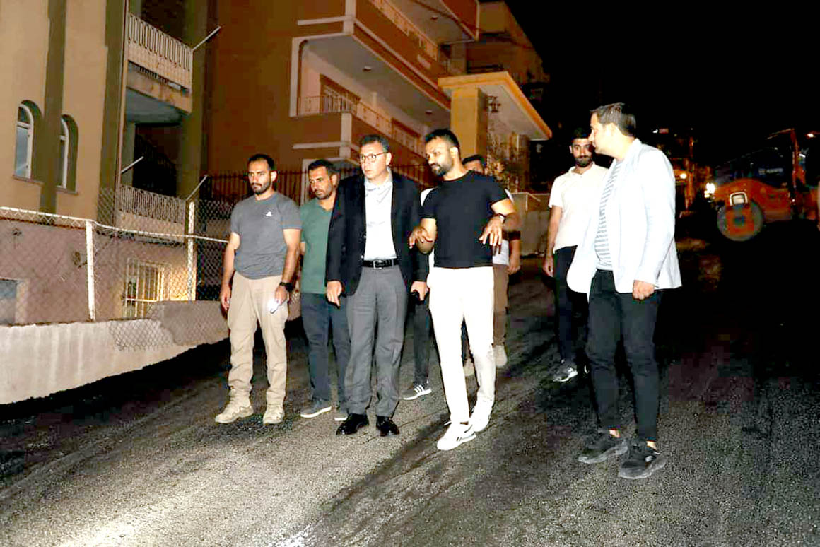 Belediye Başkanı Mehmet Dönmez, asfaltlama çalışmalarını yerinde incelerken ekiplerin daha titiz bir çalışma yapmalarını, yoğun yağışlarda asfaltın zarar görmemesi için uyarılarda bulundu.