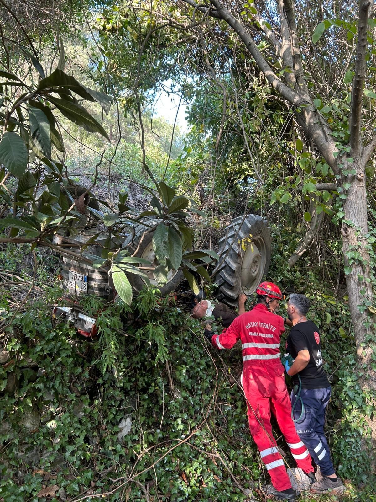 Hatay’da devrilerek ters dönen traktörün sürücüsü yaralandı. Yaralı sürücüyü traktörün altından itfaiye ekipleri kurtardı.
