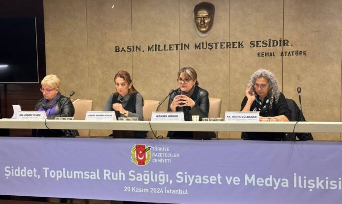 Türkiye Gazeteciler Cemiyeti (TGC) Kadın Gazeteciler Komisyonu, 25 Kasım Kadına Yönelik Şiddete Karşı Uluslararası Mücadele Günü öncesinde, “Şiddet, Toplumsal Ruh Sağlığı, Siyaset ve Medya İlişkisi” başlıklı bir toplantı düzenledi.
