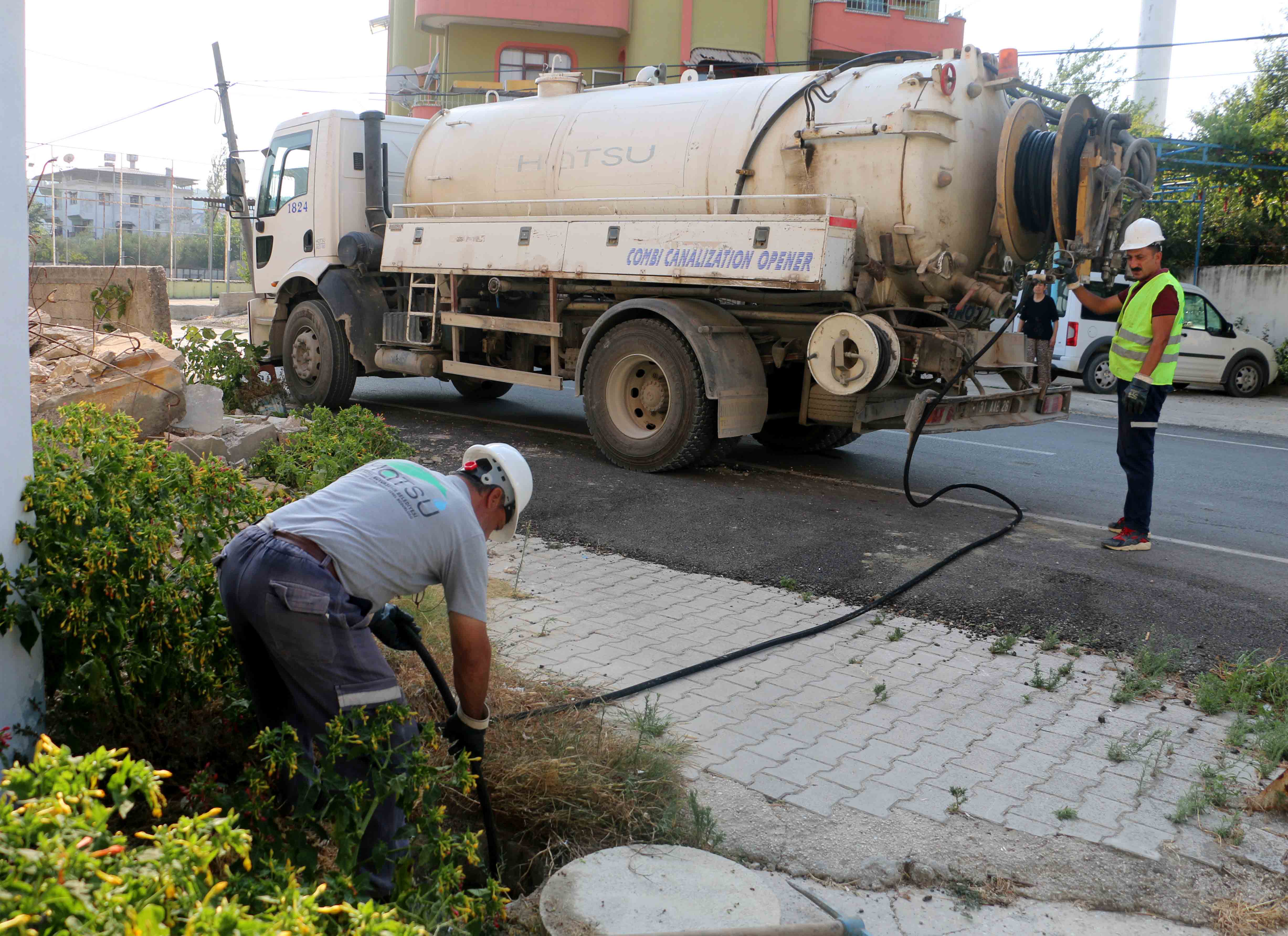 Hatay Büyükşehir Belediyesi Su ve Kanalizasyon İdaresi Genel Müdürlüğü(HATSU), kanalizasyon ana muayene bacalarında oluşan tıkanmaları çözüme kavuşturma adına temizlik çalışmalarını sürdürüyor.