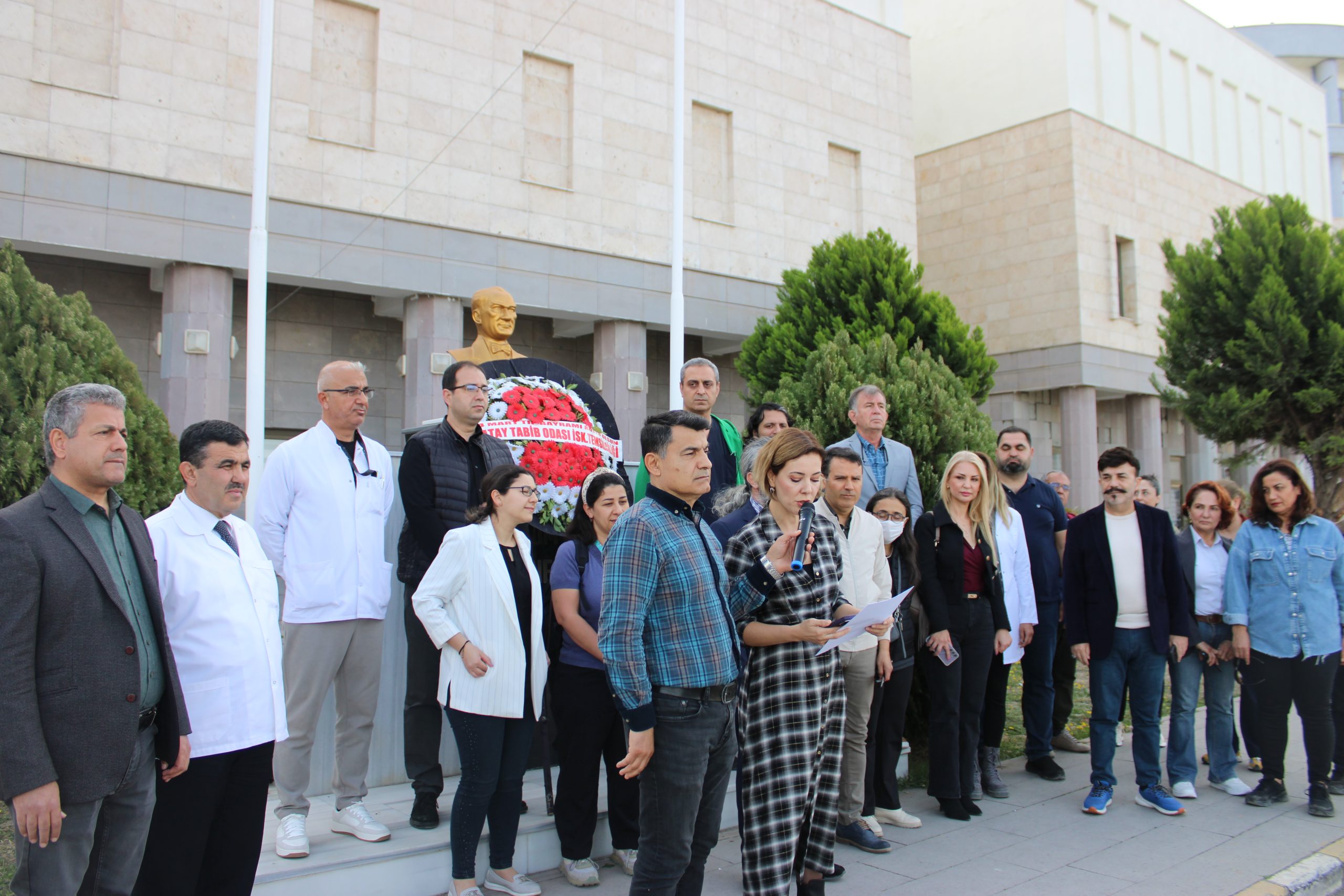 Hatay Tabip Odası, İskenderun Devlet Hastanesinde 14 Mart Tıp Bayramı günün anlam ve önemi açısından kutlama töreni düzenlendi. Saat 08.30’da başlayan törene yönetim kurulu üyeleri, basın mensupları, konuşmacı olarak Hatay Tabip Odası Yönetim Kurulu üyesi Şükran Güleç BARUTÇU, Başhekim Dr. Veysel YILDIRIM ile başhekim yardımcıları ve çok sayıda doktor ile sağlık çalışanları katıldı.