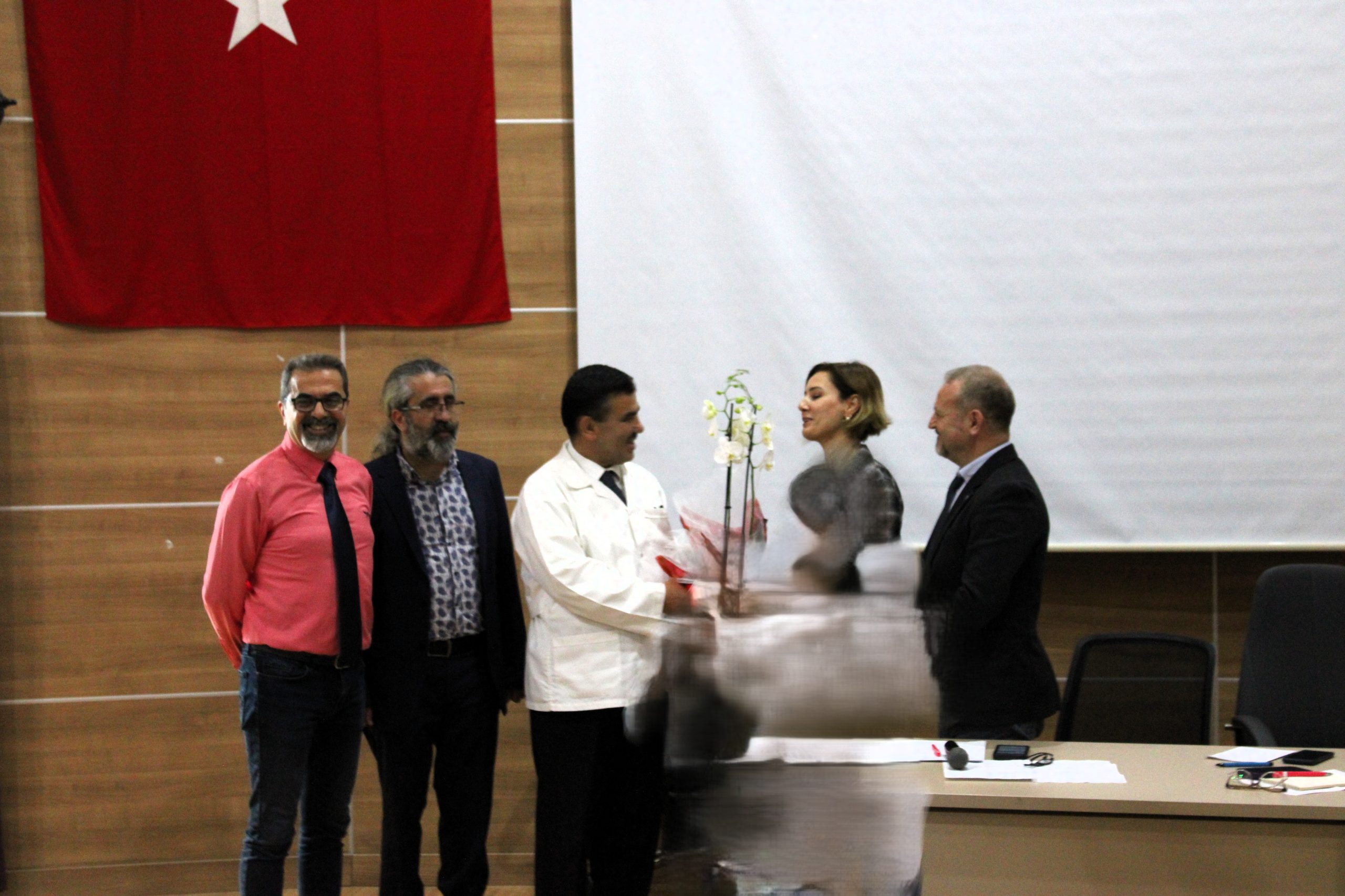 ayrıca Hatay Tabip Odasından İskenderun Devlet Hastanesi Başhekimi Veysel Yıldırım’a tıp bayramı dolayısıyla çiçek takdim etti.