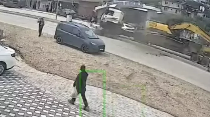 HATAY (İHA) – Hatay’da iş makinası yüklü ağır tonajlı tır sürücüsünün ışıkta bekleyen otomobile ve karşıdan karşıya geçmek için yolun sağında bekleyen öğrencilere çarpmamak için manevra yaparak refüje çıktığı anlar an be an kameraya yansıdı.