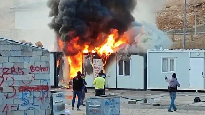 TOKİ konutlarının inşaatında çalışan işçilerin barındığı konteynerde yangın çıktı.