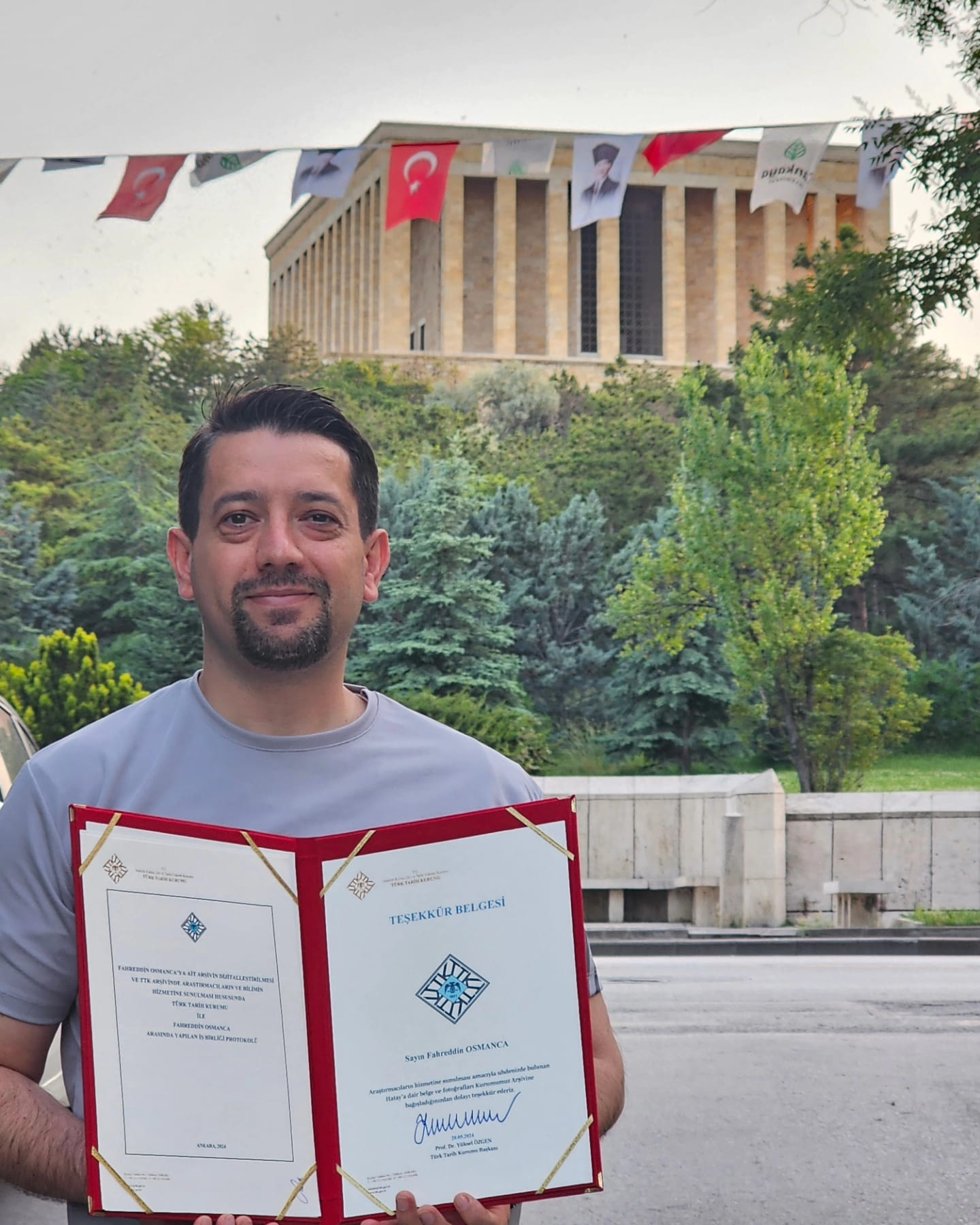 Geçtiğimiz aylarda “Hatayın tarihine ışık tutan koleksiyonunu bağışlayan ” Fahreddin Osmanca’ya Türk Tarih Kurumu teşekkür belgesi takdim etti.