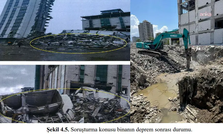 Bilirkişi raporunda, müteahhit, şantiye şefi, statik/betonarme proje müellifi, zemin iyileştirme projesi müellifi, zemin iyileştirme uygulama müellifi firma, yapı denetim firması, statik/betonarme proje ve uygulama denetçisi ile yapı denetim firmasının diğer yetkilileri, kontrol elemanı ve ilgili belediye görevlilerinin “asli kusurlu” bulunduğu belirtildi.