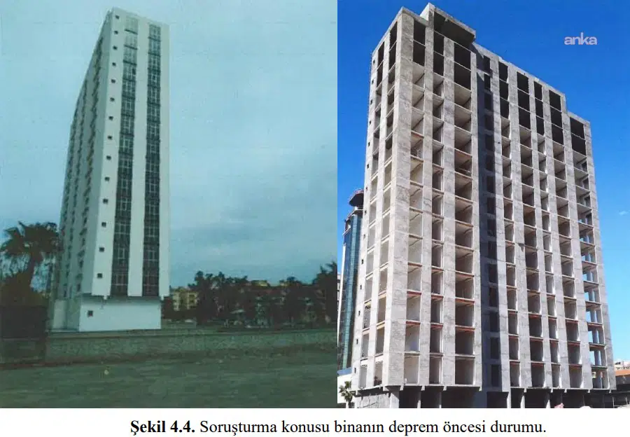 “Binanın oturduğu alanda, zemin iyileştirme projesinde belirtilen iyileştirmenin projeye uygun yapılmadığı görülmüştür. Yapının taşıyıcı sistem planında, merdiven ve asansör boşluklarının bulunduğu bölgelerde taşıyıcı sistem sürekliliğinin zayıf olduğu, bazı akslarda çerçeve sürekliliğinin sağlanamadığı ve tali kiriş ağırlıklı bir taşıyıcı düzenin bulunduğu tespit edilmiştir. Bu durum, deprem etkileri altında yük aktarım yollarının düzensizleşmesine neden olabilecek niteliktedir. Binanın bazı katlarının yapımında kullanılan beton kalitesinin, projede belirtilen beton sınıfı ile uyumlu olmadığı; standart değeri sağlamayan bir beton kullanıldığı görülmüştür.”