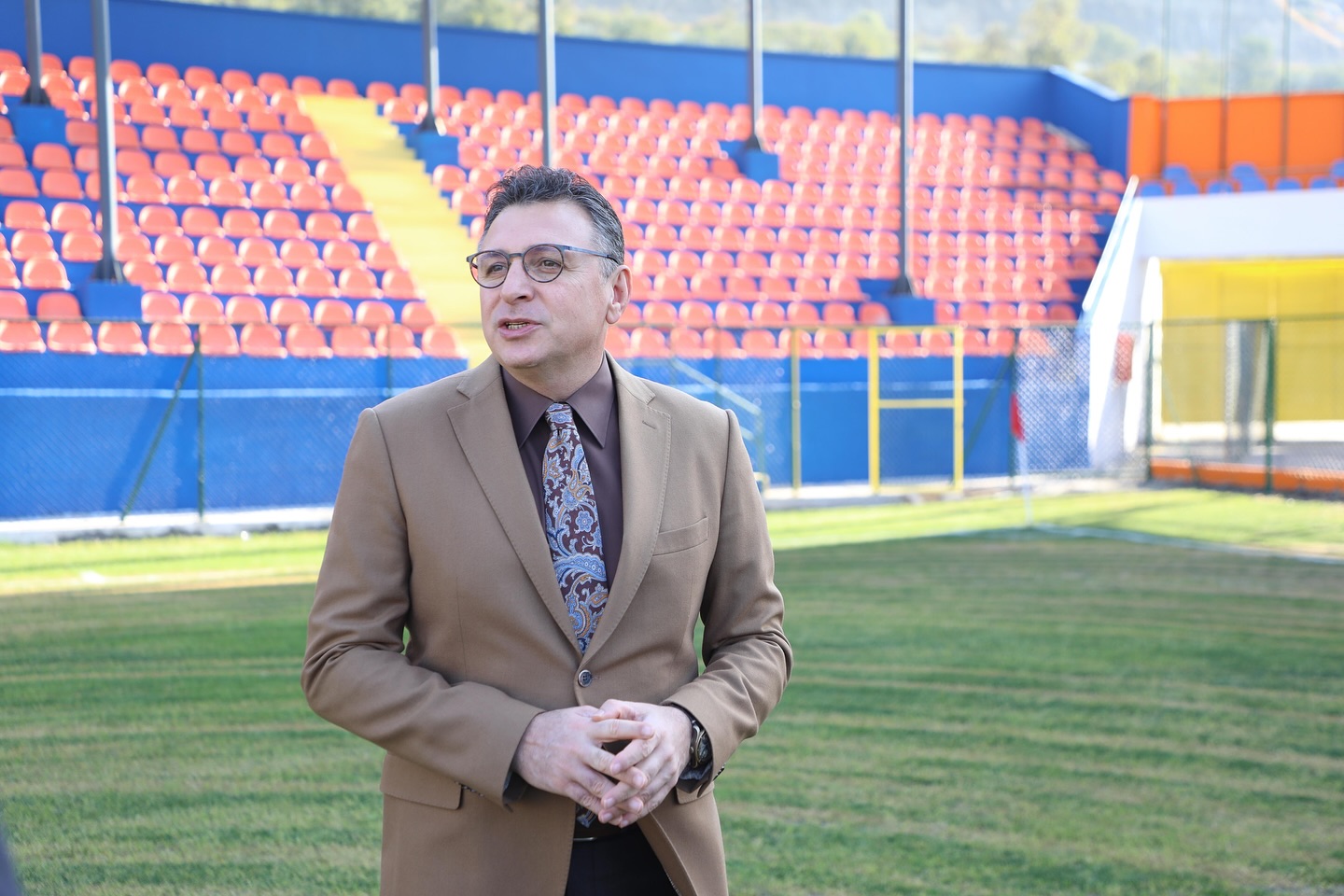 Sarıseki Fuat Tosyalı stadını gezen İskenderun Belediye Başkanı Mehmet Dönmez yaptığı denetlemelerin ardından Turuncu Mavi sevdalılarına hayırlı olsun mesajı yayınladı.
