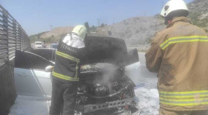 Çankaya Mahallesi mevkiinde, seyir halindeki otomobil henüz bilinmeyen alev aldı.