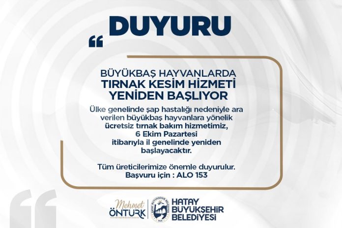 HBB yetkilileri, tırnak bakımının büyükbaş hayvanlar için büyük öneme sahip olduğunu belirtirken başvuruların ALO 153 hattından yapılacağını ifade etti.