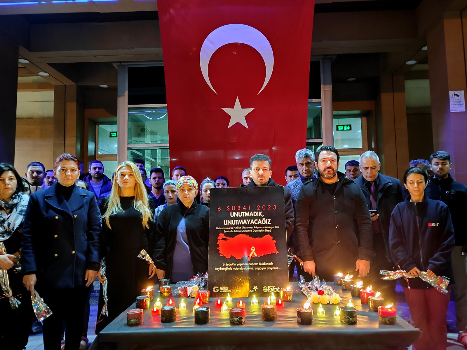 İskenderun Gelişim ve İskenderun Palmiye Hastanesi’nde, 6 Şubat’ta yaşanan deprem felaketi nedeniyle hayatını kaybeden vatandaşlar için anma programı düzenlendi.