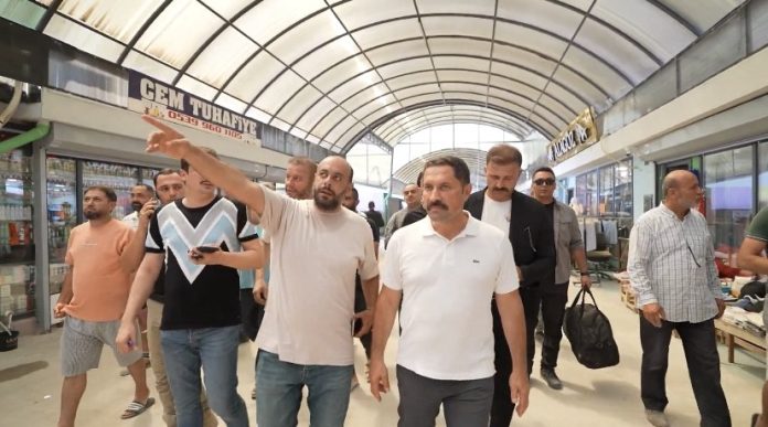Asrın felaketinde zarar gören ve kentin kültürel ile ticari belleğinde önemli bir yere sahip olan Tarihi Antakya Uzun Çarşısı’nda, tarihi dokunun korunarak yeniden ayağa kaldırılması hedefiyle çalışmalar sürüyor. Vali Masatlı, çalışmaları yerinde inceleyerek geçici olarak Prefabrik Çarşı 2. Etap’ta hizmet veren esnafla bir araya geldi. Taşınma sürecindeki esnafın iş yerlerinde de incelemelerde bulunan Masatlı, yeni çarşı alanını gezerek esnafa hayırlı ve bereketli kazançlar diledi.