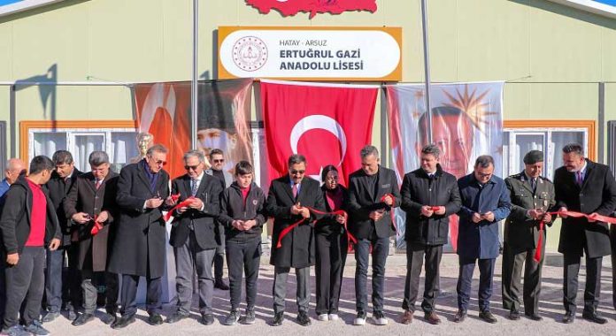 6 Şubat 2023’teki depremlerde ağır hasar alması nedeniyle yıkılarak yeniden inşa edilen Arsuz’daki Ertuğrul Gazi Anadolu Lisesi’nin yeni binası törenle eğitim – öğretime açıldı.