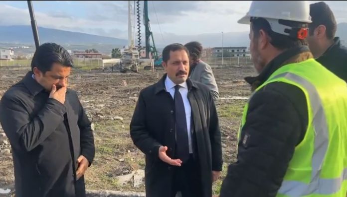 Hatay Valisi Mustafa Masatlı ve İskenderun Kaymakamı Murat Sefa Demiryürek ile birlikte İskenderun İlçesi’nde hayata geçirilen 762 kişilik Modüler Çelik Öğrenci Yurdu ve Sosyal Tesis Binası inşaatının devam eden çalışmalarını yerinde inceledi.
