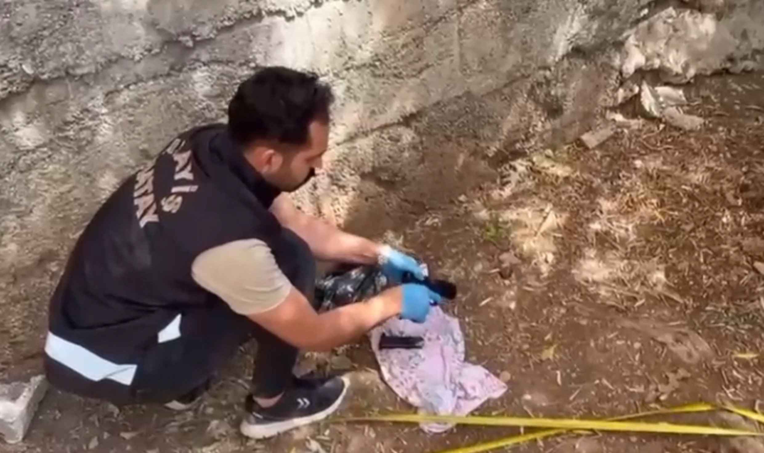 Operasyon esnasında şüphelilerden birinin polis ekiplerini fark edince evin bahçesine attığı poşet içerisindeki tabanca polis ekiplerinin dikkatiyle fark edildi.