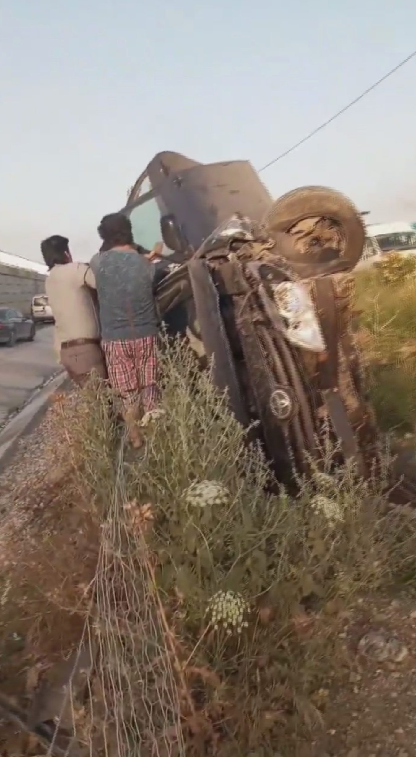 Hatay’da takla atarak yan yatan otomobilde bulunan 4 kişi yaralandı.