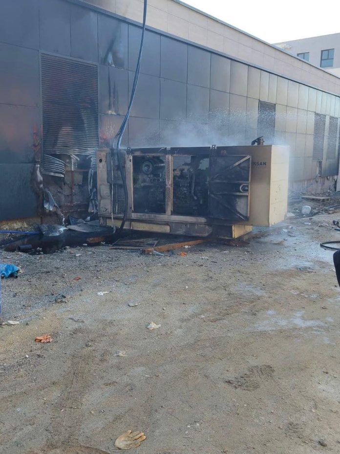 Alevlere teslim olarak yanan jeneratör kullanılmaz hale geldi.