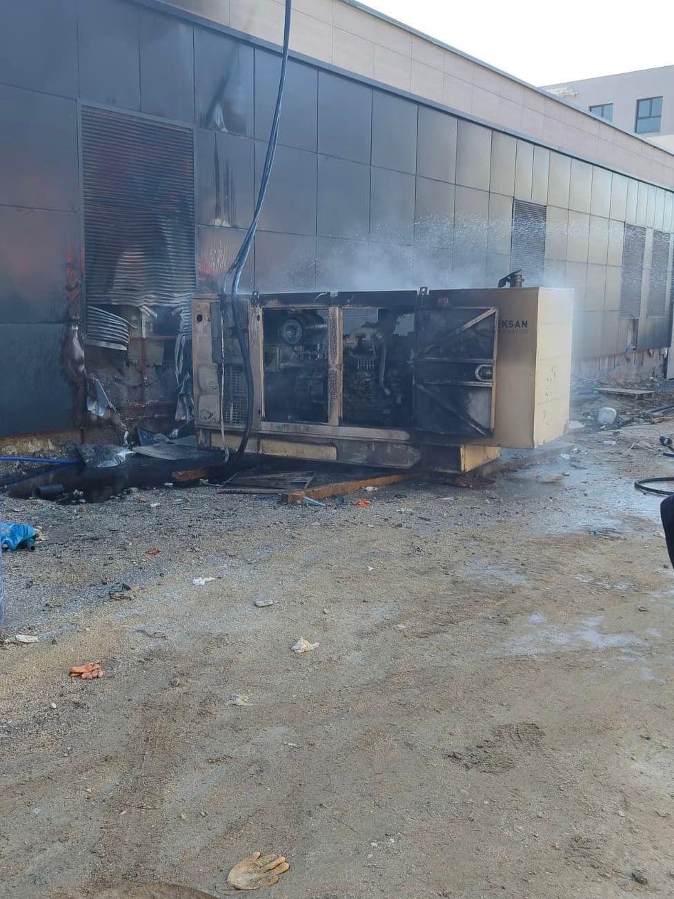 Yangın; Antakya ilçesi Atatürk Caddesi’nde bulunan şantiye alanında yaşandı. Şantiyede kullanılan jeneratör alevlere teslim oldu. İhbar üzerine bölgeye itfaiye ekibi sevk edildi. Yangın, itfaiye ekiplerinin hızlı müdahalesiyle büyümeden kısa sürede kontrol altına alındı. Soğutma çalışması tamamlanan jeneratör kullanılmaz hale geldi.