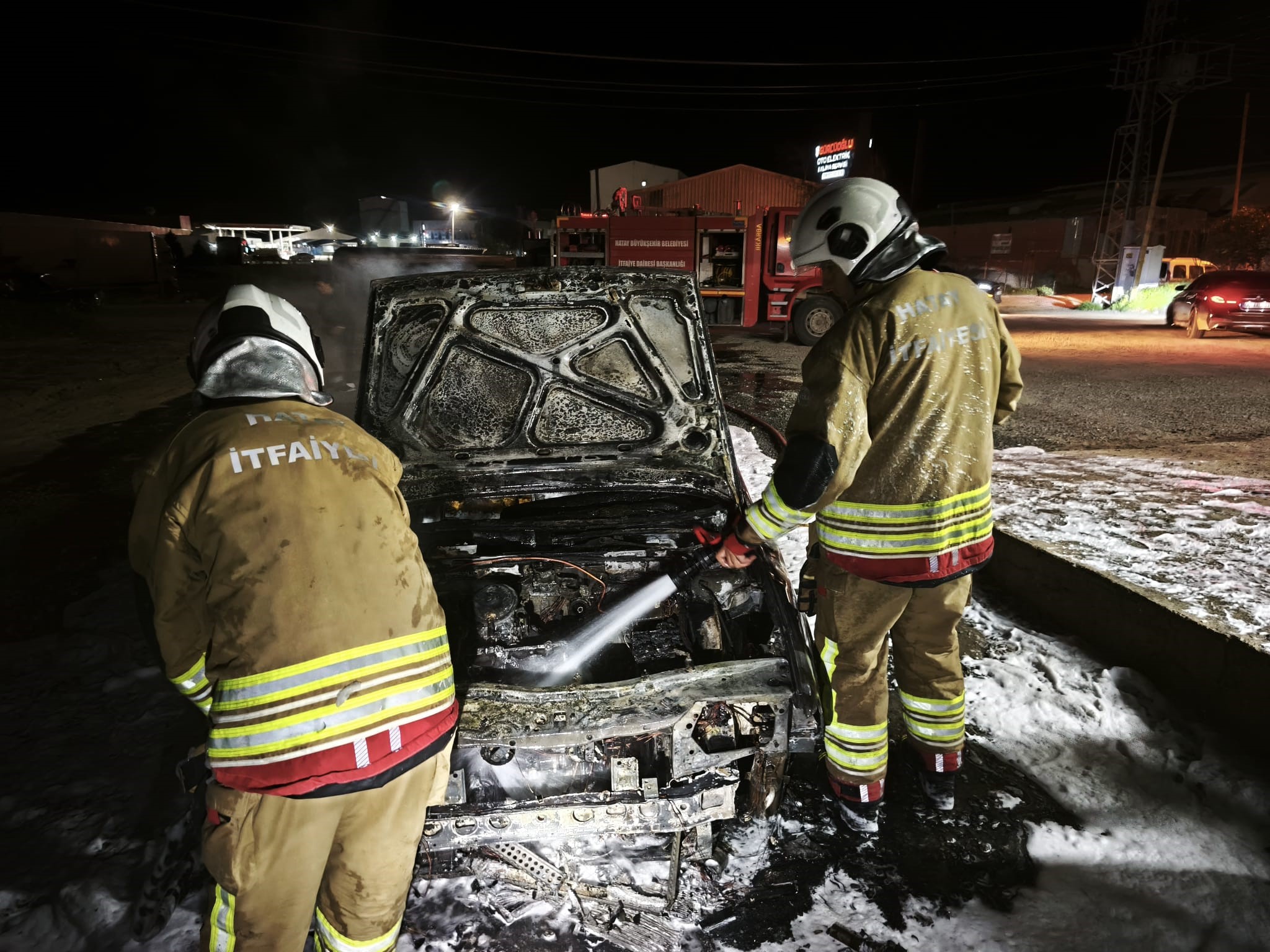 Hatay’da park halindeyken motor kısmı yanmaya başlayan TOFAŞ marka otomobil kullanılmaz hale geldi.