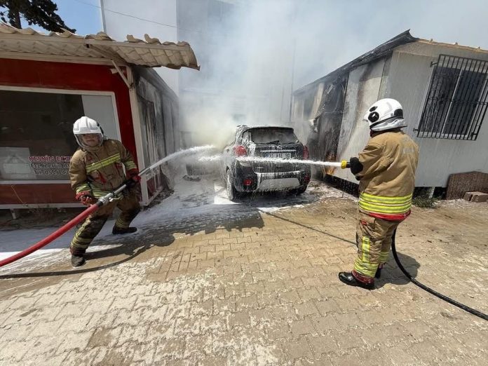 Hatay’ın Defne ilçesinde bir konteynerde çıkan yangın konteynerin yanında bulunan park halindeki araca sıçradı.